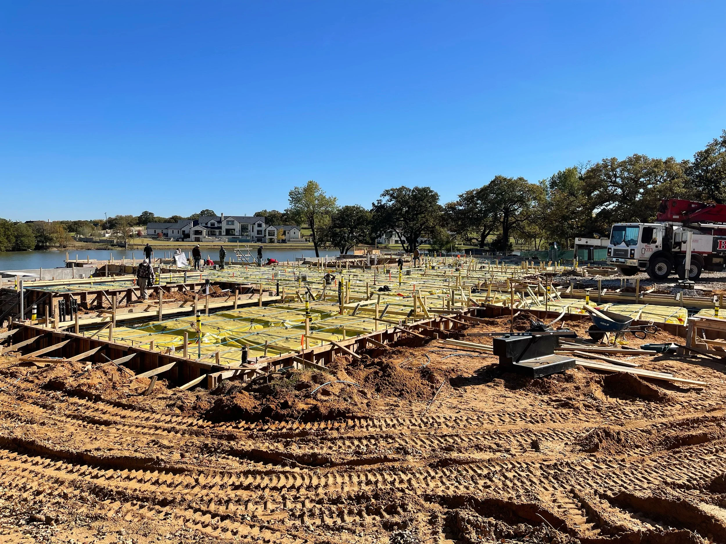 On the beautiful estates of Quail Hollow in Westlake. Over 17,000 sqft post-tension cable foundation on helical piers on grade.